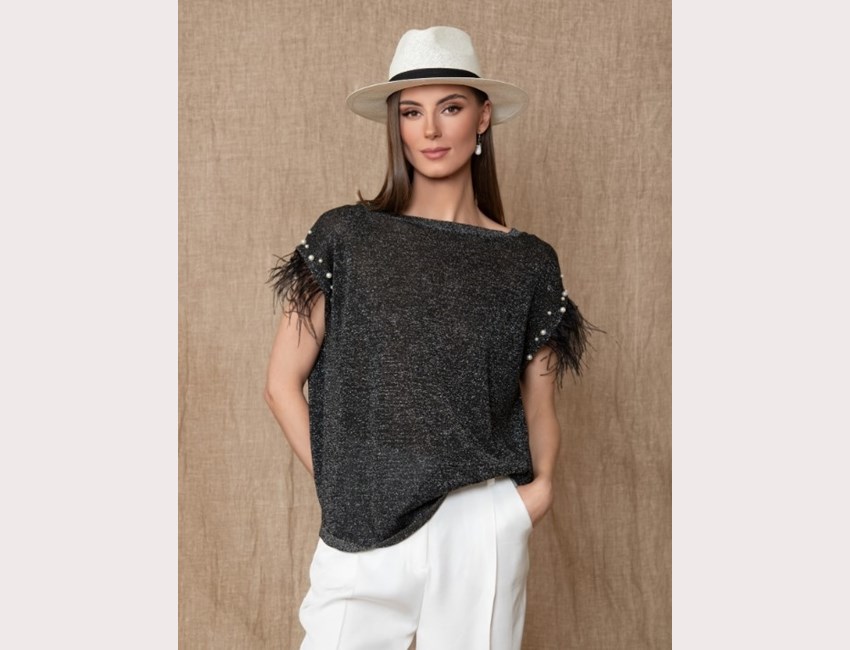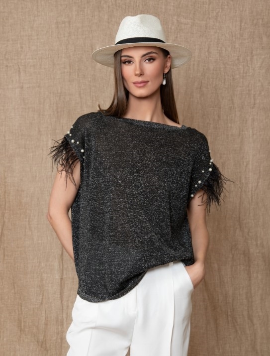 Πλεκτή μπλούζα lurex με πέρλες